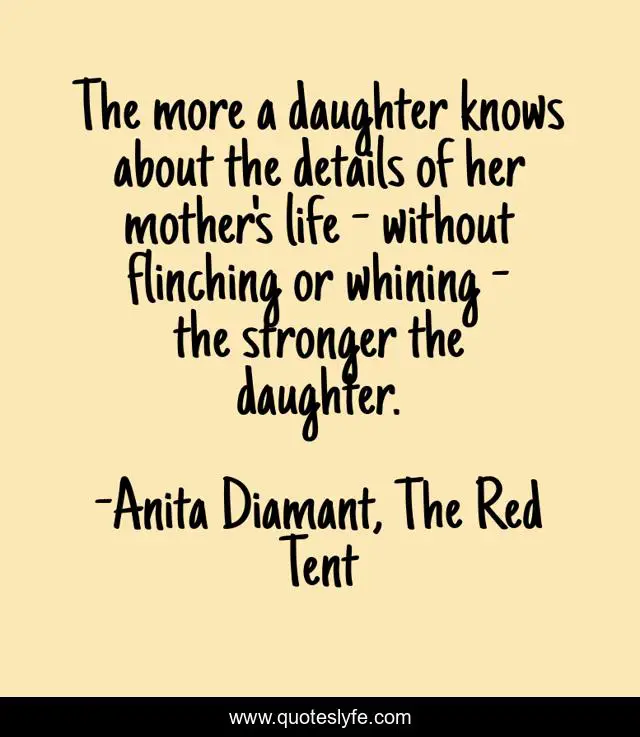 This page presents the quote "The more a daughter knows about the details of her mother's life - without flinching or whining - the stronger the daughter.". Author of this quote is Anita Diamant, The Red Tent. This quote is about daughters, mothers,.