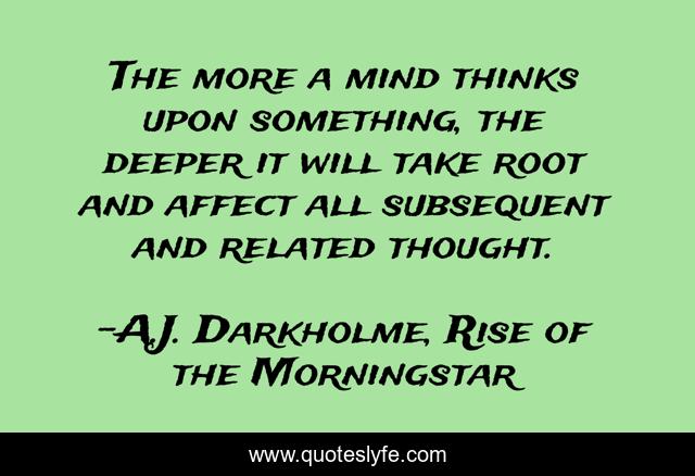 "A.J. Darkholme, Rise of the Morningstar Quotes." Quoteslyfe.com, 2025. Sun. 07 Dec. 2025. <https://www.quoteslyfe.com/quote/The-more-a-mind-thinks-upon-something-87591>.