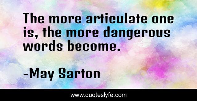 This page presents the quote "The more articulate one is, the more dangerous words become.". Author of this quote is May Sarton. This quote is about dangerous, words, become,.