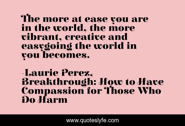 This page presents the quote "The more at ease you are in the world, the more vibrant, creative and easygoing the world in you becomes.". Author of this quote is Laurie Perez, Breakthrough: How to Have Compassion for Those Who Do Harm. This quote is about compassion, inner-beauty, creativity,.
