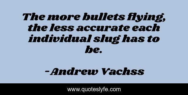 This page presents the quote "The more bullets flying, the less accurate each individual slug has to be.". Author of this quote is Andrew Vachss. .