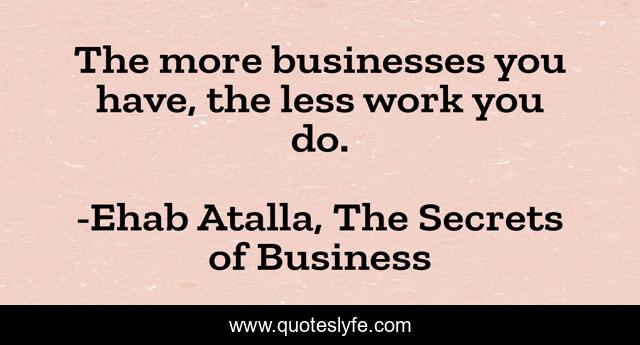 This page presents the quote "The more businesses you have, the less work you do.". Author of this quote is Ehab Atalla, The Secrets of Business. This quote is about entrepreneur, business-advice, business, entrepreneurship,.