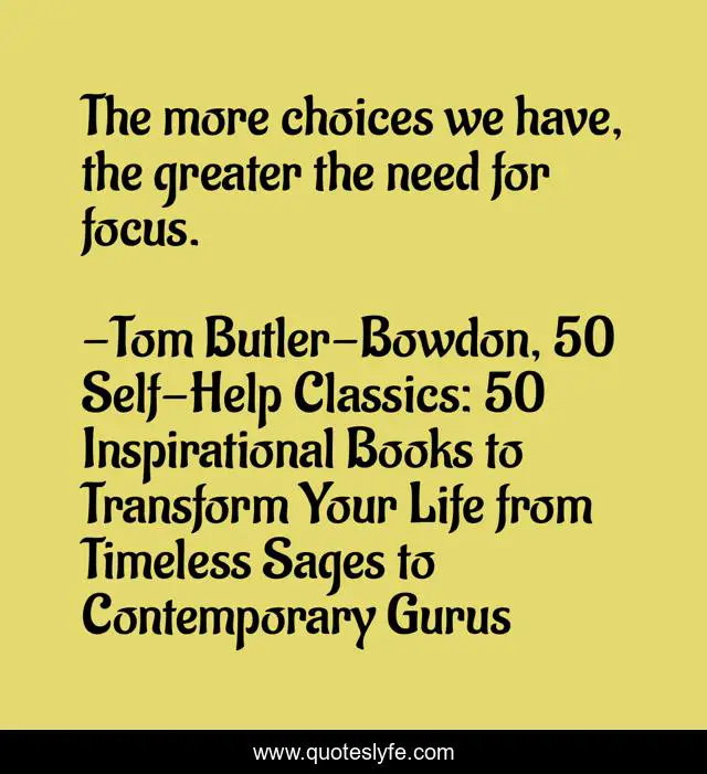 "Tom Butler-Bowdon, 50 Self-Help Classics: 50 Inspirational Books to Transform Your Life from Timeless Sages to Contemporary Gurus Quotes." Quoteslyfe.com, 2025. Fri. 05 Dec. 2025. <https://www.quoteslyfe.com/quote/The-more-choices-we-have-the-greater-184560>.