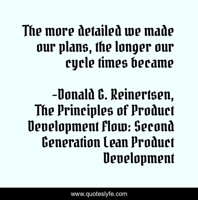 "Donald G. Reinertsen, The Principles of Product Development Flow: Second Generation Lean Product Development Quotes." Quoteslyfe.com, 2025. Sat. 06 Dec. 2025. <https://www.quoteslyfe.com/quote/The-more-detailed-we-made-our-plans-254969>.