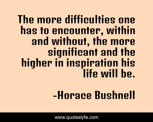 This page presents the quote "The more difficulties one has to encounter, within and without, the more significant and the higher in inspiration his life will be.". Author of this quote is Horace Bushnell. This quote is about enthusiasm, adversity, inspirational,.