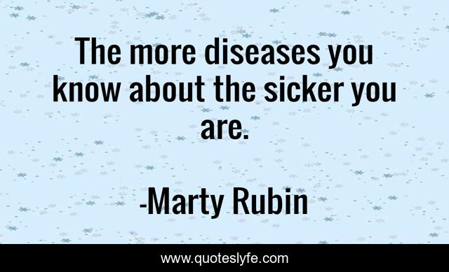 "Marty Rubin Quotes." Quoteslyfe.com, 2025. Sun. 07 Dec. 2025. <https://www.quoteslyfe.com/quote/The-more-diseases-you-know-about-the-30770>.