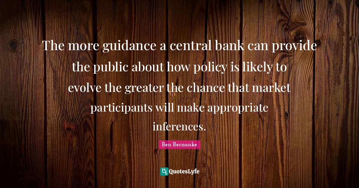 This page presents the quote "The more guidance a central bank can provide the public about how policy is likely to evolve the greater the chance that market participants will make appropriate inferences.". Author of this quote is Ben Bernanke. This quote is about guidance, bank,.