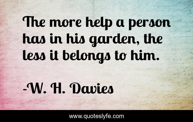This page presents the quote "The more help a person has in his garden, the less it belongs to him.". Author of this quote is W. H. Davies. This quote is about person, help, garden,.