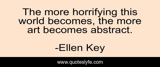 This page presents the quote "The more horrifying this world becomes, the more art becomes abstract.". Author of this quote is Ellen Key. This quote is about world, abstract, more,.