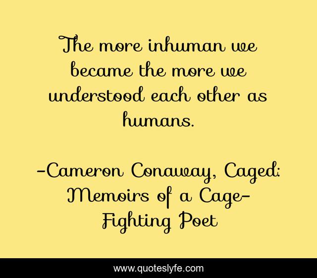 "Cameron Conaway, Caged: Memoirs of a Cage-Fighting Poet Quotes." Quoteslyfe.com, 2025. Fri. 05 Dec. 2025. <https://www.quoteslyfe.com/quote/The-more-inhuman-we-became-the-more-71080>.