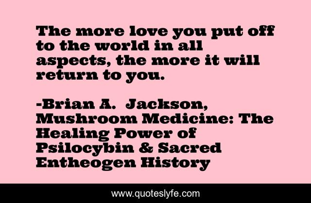 "Brian A. Jackson, Mushroom Medicine: The Healing Power of Psilocybin & Sacred Entheogen History Quotes." Quoteslyfe.com, 2025. Sat. 06 Dec. 2025. <https://www.quoteslyfe.com/quote/The-more-love-you-put-off-to-135226>.