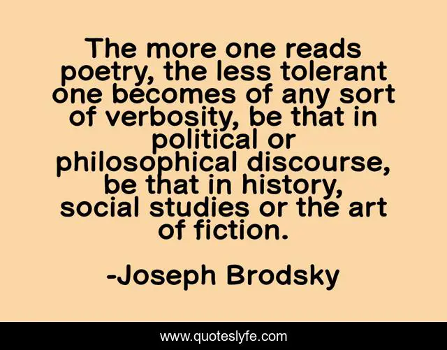 This page presents the quote "The more one reads poetry, the less tolerant one becomes of any sort of verbosity, be that in political or philosophical discourse, be that in history, social studies or the art of fiction.". Author of this quote is Joseph Brodsky. This quote is about art, political, history,.