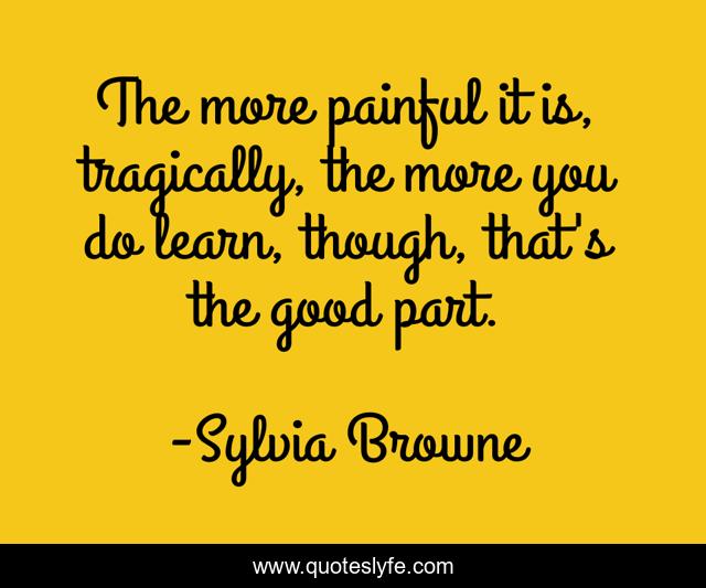 This page presents the quote "The more painful it is, tragically, the more you do learn, though, that's the good part.". Author of this quote is Sylvia Browne. This quote is about good, learn,.