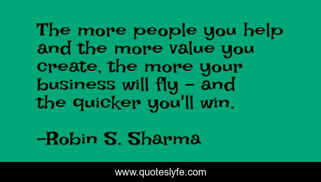 This page presents the quote "The more people you help and the more value you create, the more your business will fly - and the quicker you'll win.". Author of this quote is Robin S. Sharma. This quote is about fly, help, value,.