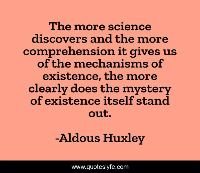 This page presents the quote "The more science discovers and the more comprehension it gives us of the mechanisms of existence, the more clearly does the mystery of existence itself stand out.". Author of this quote is Aldous Huxley. .