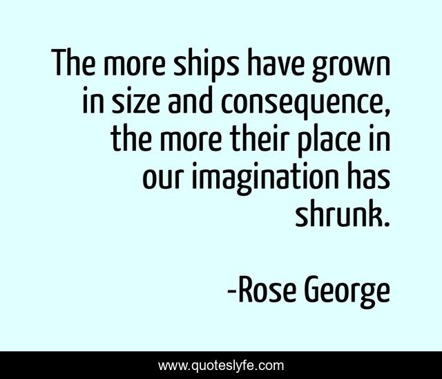 This page presents the quote "The more ships have grown in size and consequence, the more their place in our imagination has shrunk.". Author of this quote is Rose George. This quote is about place, ships, size,.
