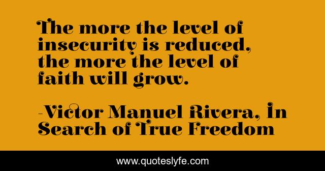 This page presents the quote "The more the level of insecurity is reduced, the more the level of faith will grow.". Author of this quote is Victor Manuel Rivera, In Search of True Freedom. This quote is about freedom, leadership, christian-living,.