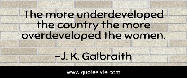 This page presents the quote "The more underdeveloped the country the more overdeveloped the women.". Author of this quote is J. K. Galbraith. .