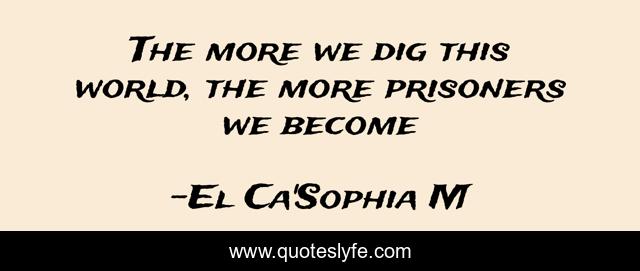 This page presents the quote "The more we dig this world, the more prisoners we become". Author of this quote is El Ca'Sophia M. This quote is about life, life-experience, life-lessons, positive, motivational, confidence, life-and-death, inspirational, enthusiasm,.
