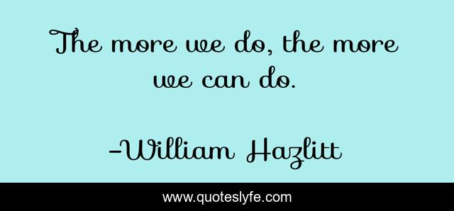 This page presents the quote "The more we do, the more we can do.". Author of this quote is William Hazlitt. .
