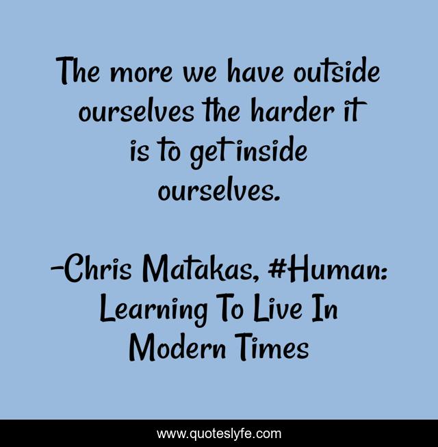 "Chris Matakas, #Human: Learning To Live In Modern Times Quotes." Quoteslyfe.com, 2025. Sat. 06 Dec. 2025. <https://www.quoteslyfe.com/quote/The-more-we-have-outside-ourselves-the-182942>.