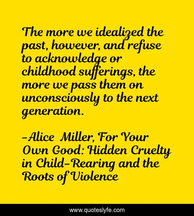 "Alice Miller, For Your Own Good: Hidden Cruelty in Child-Rearing and the Roots of Violence Quotes." Quoteslyfe.com, 2025. Sun. 07 Dec. 2025. <https://www.quoteslyfe.com/quote/The-more-we-idealized-the-past-however-257882>.