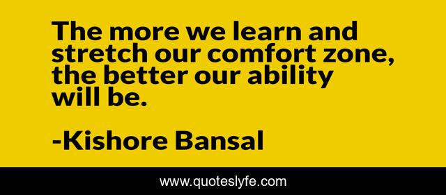 This page presents the quote "The more we learn and stretch our comfort zone, the better our ability will be.". Author of this quote is Kishore Bansal. This quote is about ability, learn,.