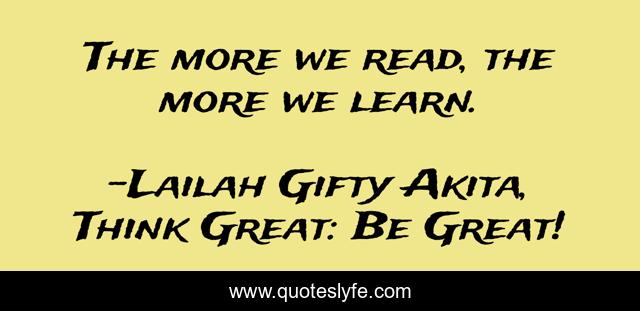 "Lailah Gifty Akita, Think Great: Be Great! Quotes." Quoteslyfe.com, 2025. Fri. 05 Dec. 2025. <https://www.quoteslyfe.com/quote/The-more-we-read-the-more-we-172905>.