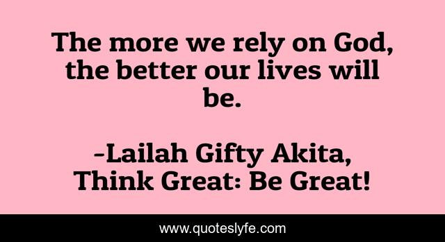 "Lailah Gifty Akita, Think Great: Be Great! Quotes." Quoteslyfe.com, 2025. Mon. 08 Dec. 2025. <https://www.quoteslyfe.com/quote/The-more-we-rely-on-God-the-121349>.