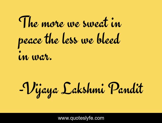 "Vijaya Lakshmi Pandit Quotes." Quoteslyfe.com, 2025. Sat. 06 Dec. 2025. <https://www.quoteslyfe.com/quote/The-more-we-sweat-in-peace-the-272720>.
