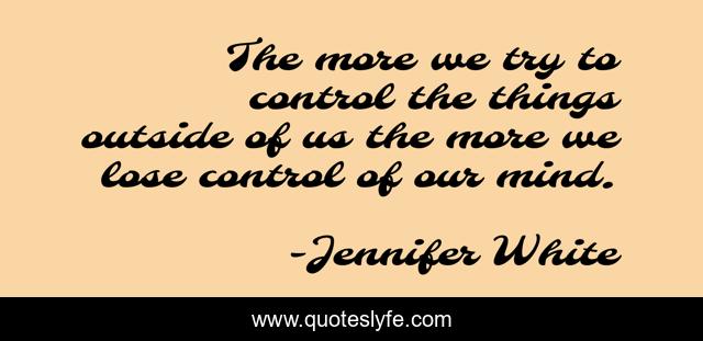 This page presents the quote "The more we try to control the things outside of us the more we lose control of our mind.". Author of this quote is Jennifer White. This quote is about enthusiasm, life, mind, spiritual, inspirational,.