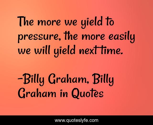 This page presents the quote "The more we yield to pressure, the more easily we will yield next time.". Author of this quote is Billy Graham, Billy Graham in Quotes. This quote is about christian-life, billy-graham,.