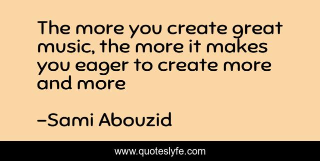 This page presents the quote "The more you create great music, the more it makes you eager to create more and more". Author of this quote is Sami Abouzid. This quote is about love, affection,.