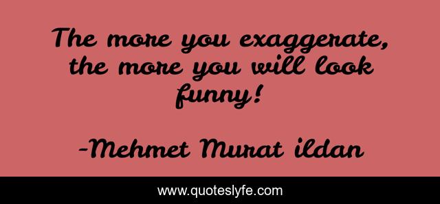 This page presents the quote "The more you exaggerate, the more you will look funny!". Author of this quote is Mehmet Murat ildan. This quote is about exaggerations, funny, ildan-words, ildan-wise-sayings, exaggeration, exaggerate, exaggerated, turkish, turkish-playwrights,.