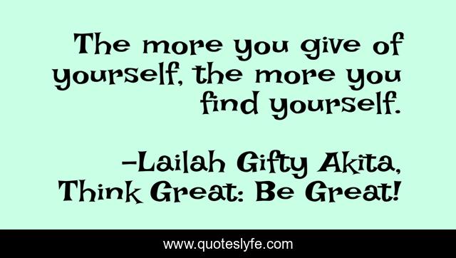"Lailah Gifty Akita, Think Great: Be Great! Quotes." Quoteslyfe.com, 2025. Sat. 06 Dec. 2025. <https://www.quoteslyfe.com/quote/The-more-you-give-of-yourself-the-104531>.