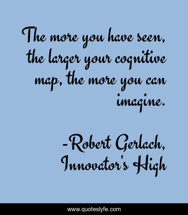 This page presents the quote "The more you have seen, the larger your cognitive map, the more you can imagine.". Author of this quote is Robert Gerlach, Innovator's High. .