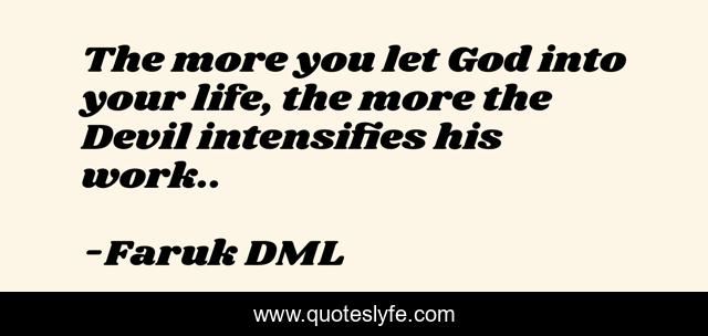 This page presents the quote "The more you let God into your life, the more the Devil intensifies his work..". Author of this quote is Faruk DML. This quote is about god, devil,.