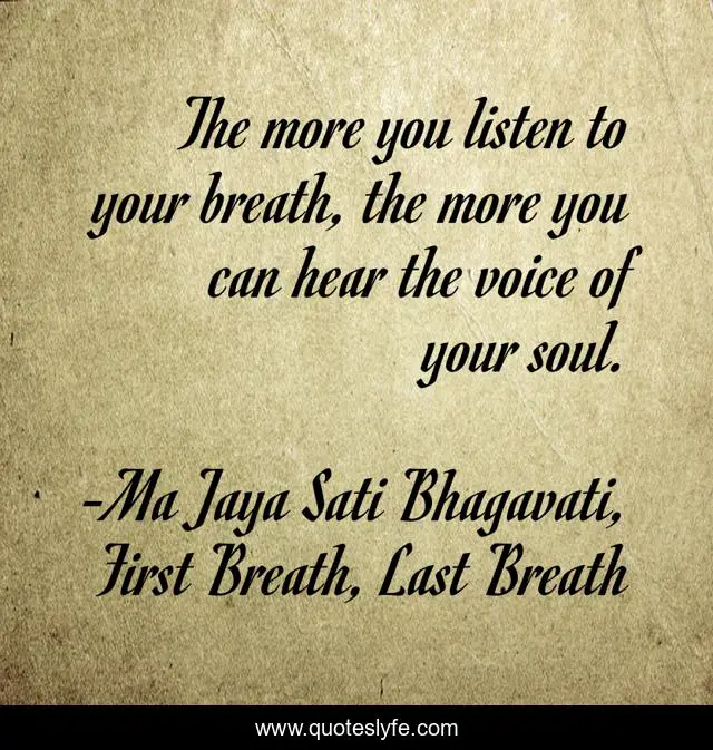 "Ma Jaya Sati Bhagavati, First Breath, Last Breath Quotes." Quoteslyfe.com, 2025. Sat. 06 Dec. 2025. <https://www.quoteslyfe.com/quote/The-more-you-listen-to-your-breath-44436>.