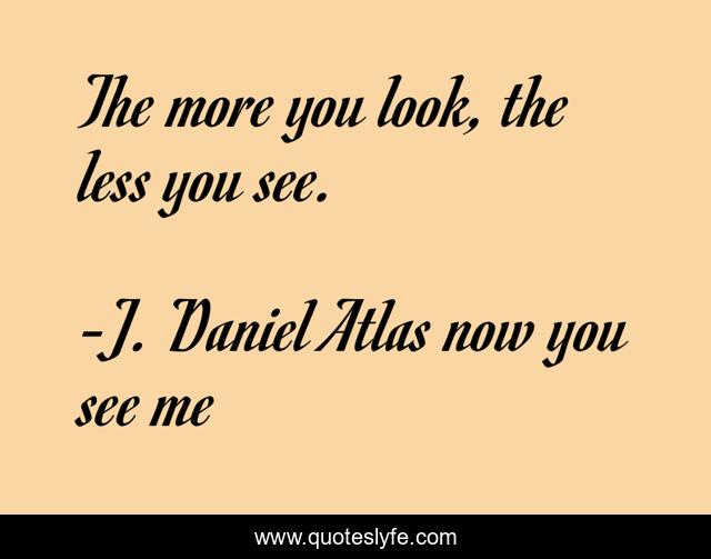 "J. Daniel Atlas now you see me Quotes." Quoteslyfe.com, 2025. Fri. 05 Dec. 2025. <https://www.quoteslyfe.com/quote/The-more-you-look-the-less-you-255818>.