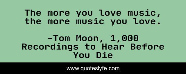 This page presents the quote "The more you love music, the more music you love.". Author of this quote is Tom Moon, 1,000 Recordings to Hear Before You Die. .