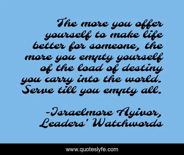 "Israelmore Ayivor, Leaders' Watchwords Quotes." Quoteslyfe.com, 2025. Sat. 06 Dec. 2025. <https://www.quoteslyfe.com/quote/The-more-you-offer-yourself-to-make-89758>.