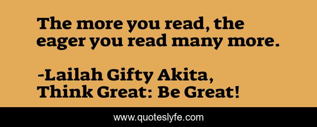 "Lailah Gifty Akita, Think Great: Be Great! Quotes." Quoteslyfe.com, 2025. Mon. 15 Dec. 2025. <https://www.quoteslyfe.com/quote/The-more-you-read-the-eager-you-232042>.