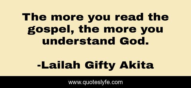 This page presents the quote "The more you read the gospel, the more you understand God.". Author of this quote is Lailah Gifty Akita. This quote is about god, gospel, study-of-scriptures,.