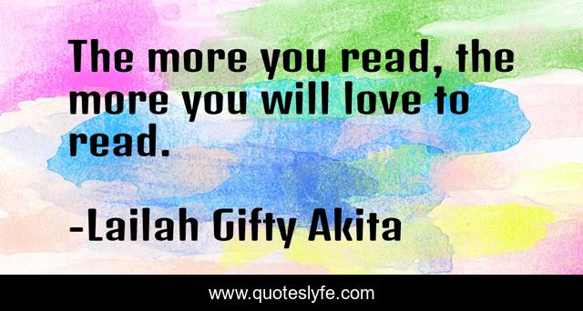 This page presents the quote "The more you read, the more you will love to read.". Author of this quote is Lailah Gifty Akita. This quote is about education, love, read, advice-motivation, habits, passion, learning, reading, children,.