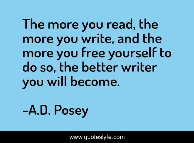 This page presents the quote "The more you read, the more you write, and the more you free yourself to do so, the better writer you will become.". Author of this quote is A.D. Posey. This quote is about storytelling, read, storytellers, free, writing, write, writers, ad-posey, inspirational,.