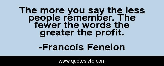 This page presents the quote "The more you say the less people remember. The fewer the words the greater the profit.". Author of this quote is Francois Fenelon. .
