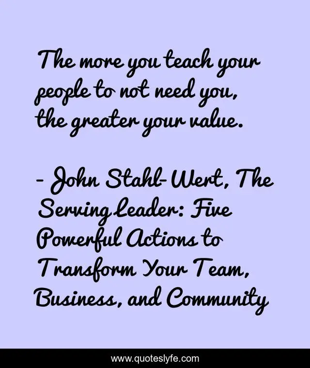 "John Stahl-Wert, The Serving Leader: Five Powerful Actions to Transform Your Team, Business, and Community Quotes." Quoteslyfe.com, 2025. Mon. 08 Dec. 2025. <https://www.quoteslyfe.com/quote/The-more-you-teach-your-people-to-146800>.