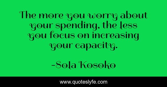 This page presents the quote "The more you worry about your spending, the less you focus on increasing your capacity.". Author of this quote is Sola Kosoko. This quote is about quotegeeks, confidence, success, readersofinstagram, famousquotes, selfimprovement, quoteaddicts, motivational, avant-garde,.