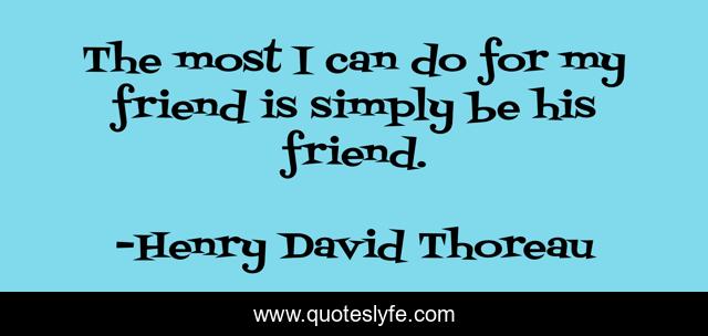 This page presents the quote "The most I can do for my friend is simply be his friend.". Author of this quote is Henry David Thoreau. This quote is about friend, i can, my friend,.