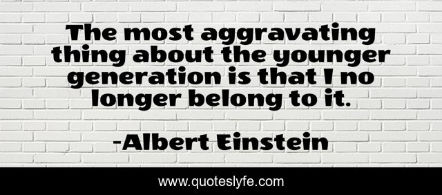 This page presents the quote "The most aggravating thing about the younger generation is that I no longer belong to it.". Author of this quote is Albert Einstein. This quote is about life, generation, young, albert-einstein, youth, aggravating,.